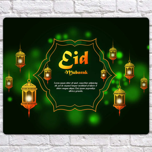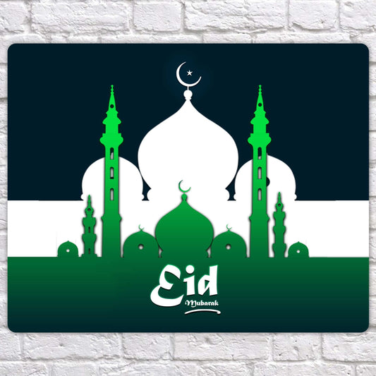 Eid Mubarak Mirror Metal Sign Green and Mirror Mosques