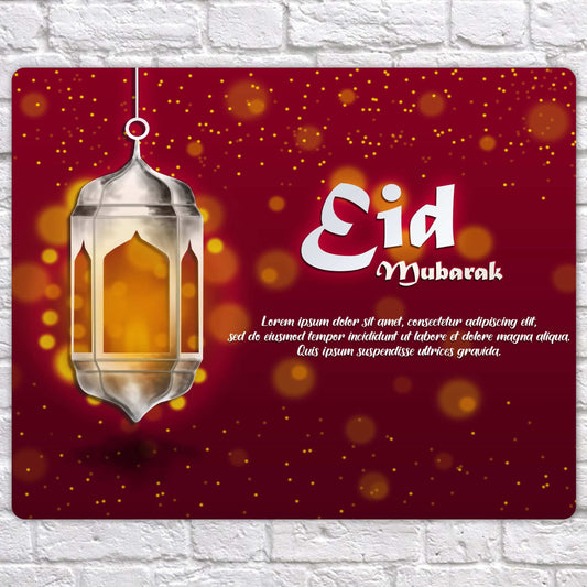 Personalised Eid Mubarak Mirror Metal Sign One Lantern Brick Red - Add Your Custom Text
