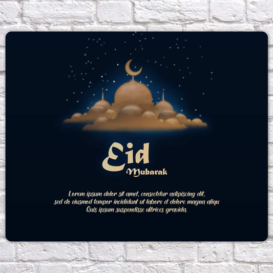 Personalised Eid Mubarak Mirror Metal Sign Blue Beige Mosque - Add Your Custom Text