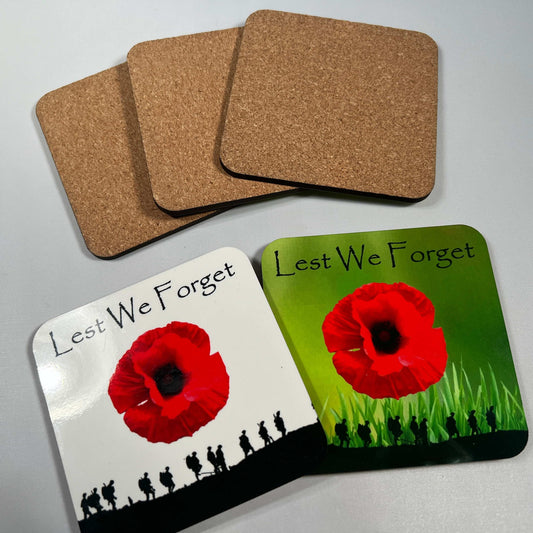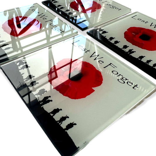 Square Glass Table Coaster Set Military Poppy Lest We Forget (set of 4)