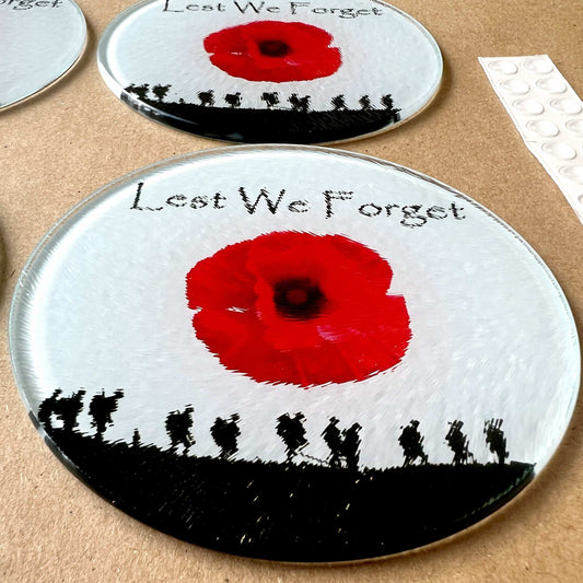 Round Glass Table Coaster Set Military Poppy Lest We Forget (set of 4)