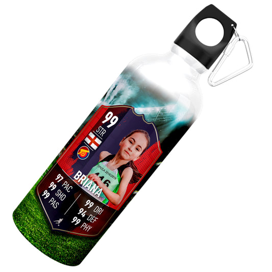 Fußball-Statistik-Wasserflasche aus Aluminium mit Streifen in Marineblau