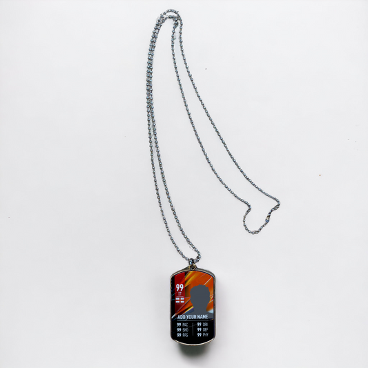 Fußball-ID-Tag-Halskette mit rotem Hintergrund