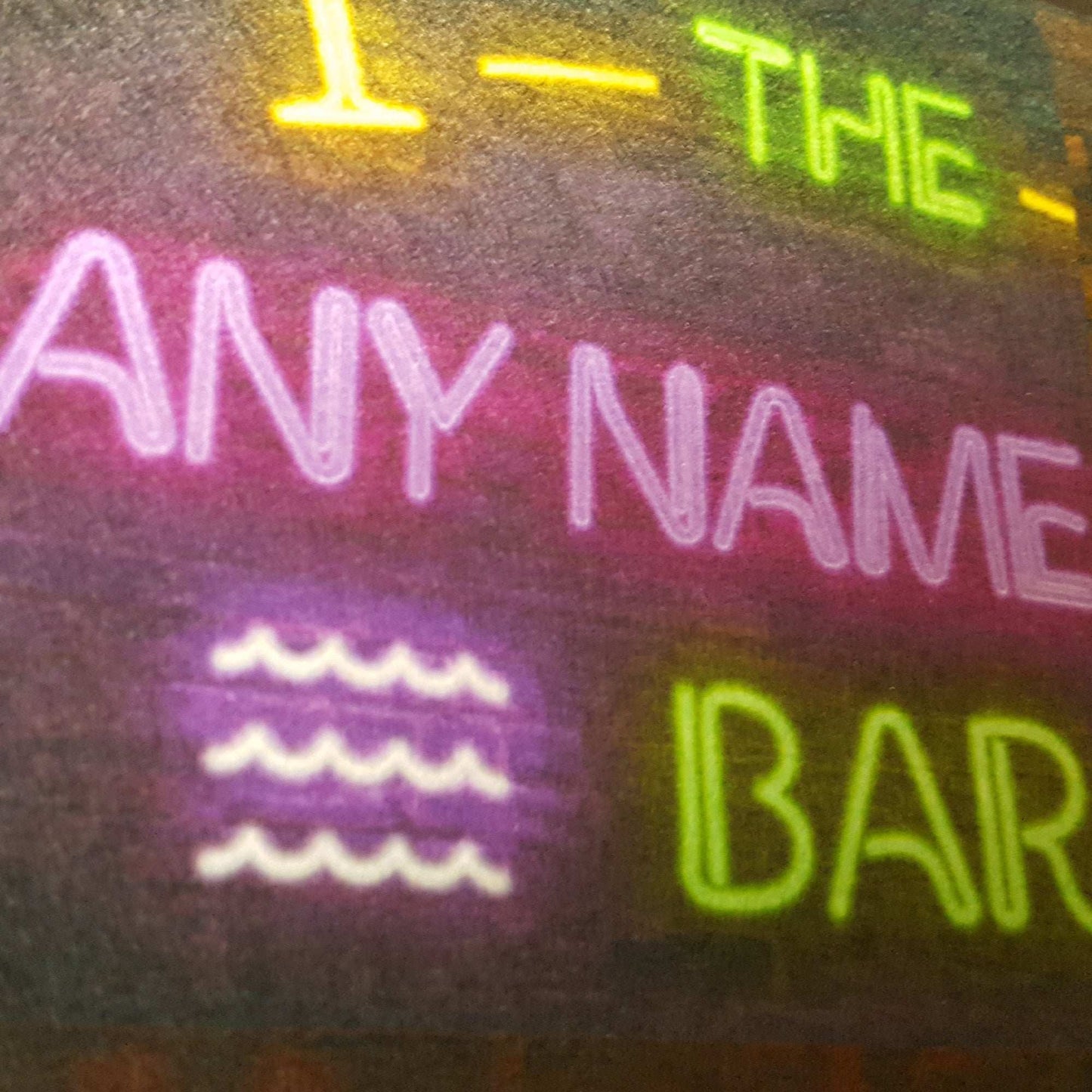 Customisable Bar Runner / Bar Mat with Neon Text Effect and Cocktail and Champagne Design