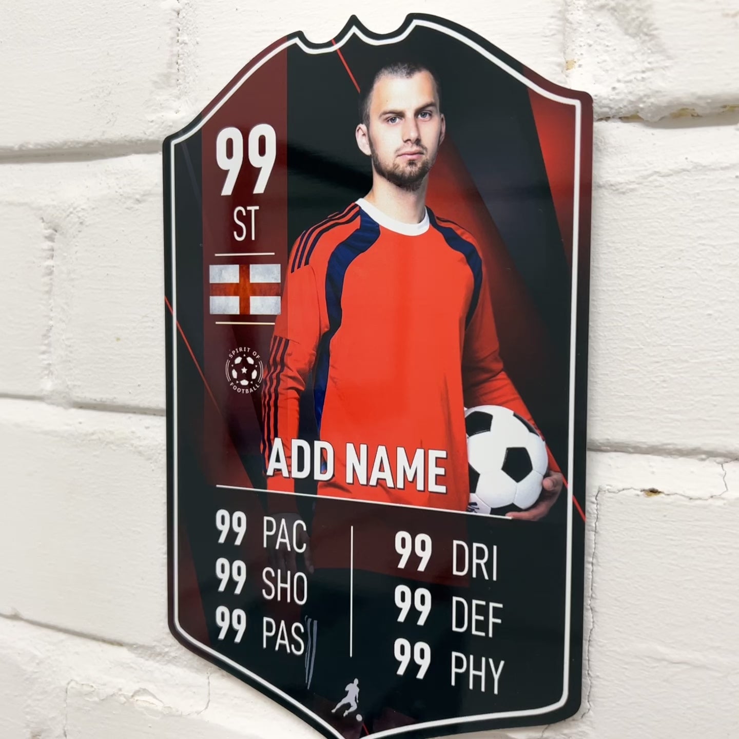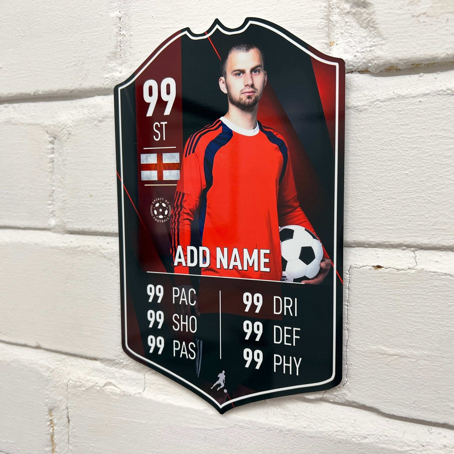 FULLY CUSTOMISABLE: with your Own Photo Player Name, Team & Nation, Position & Overall rating, Stats (Pace, Shooting, Passing, Dribbling, Defending, Physical).