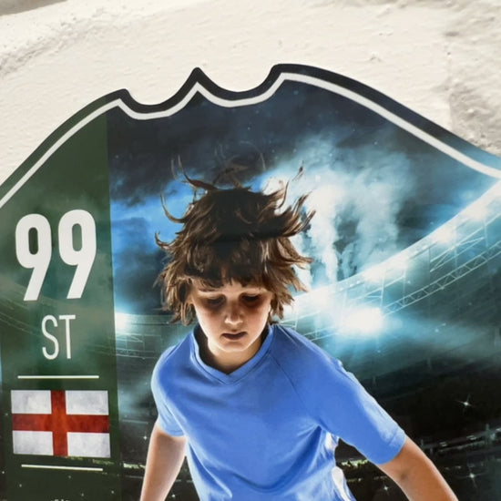 FULLY CUSTOMISABLE: with your Own Photo Player Name, Team & Nation, Position & Overall rating, Stats (Pace, Shooting, Passing, Dribbling, Defending, Physical).