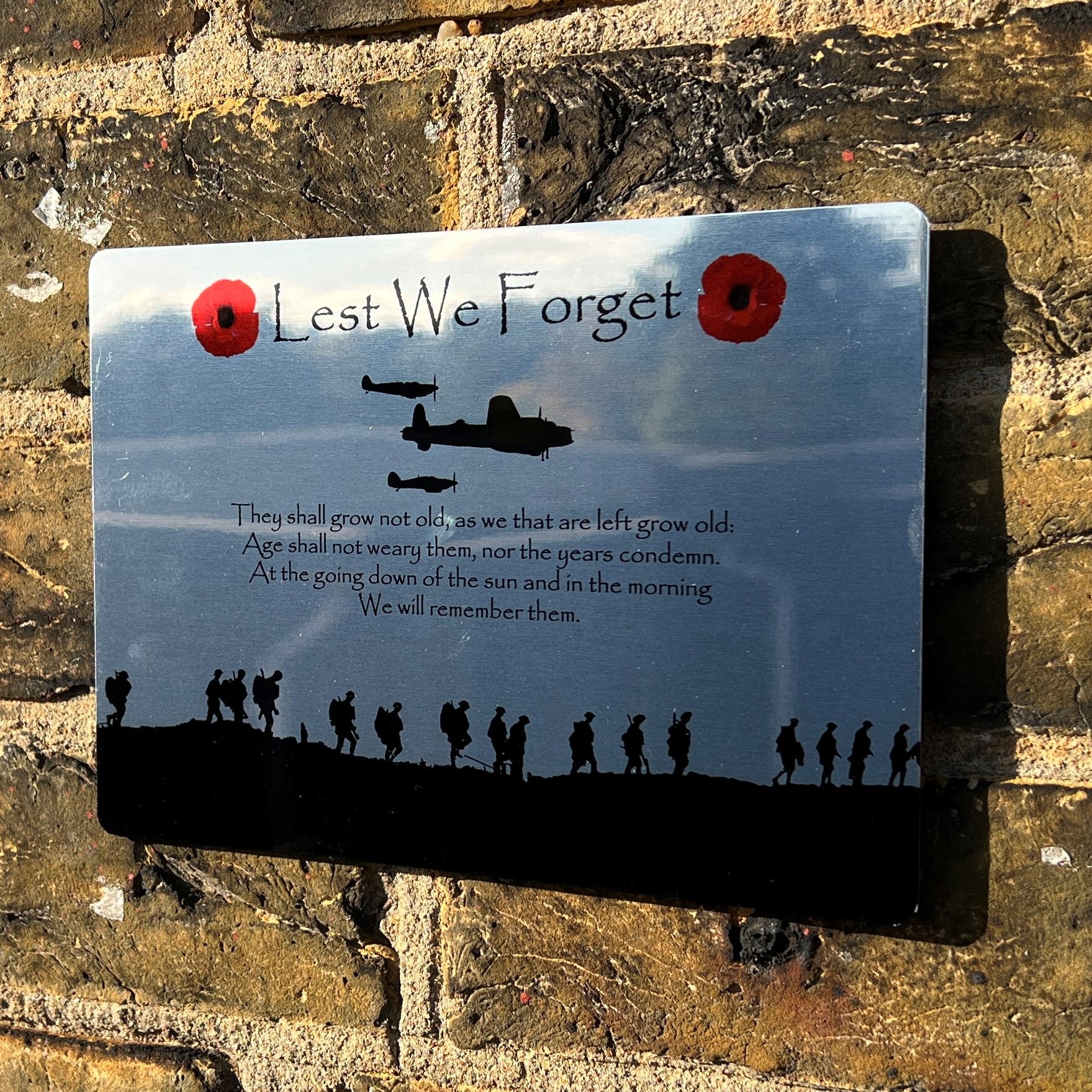 Lest we Forget Metal Mirror Sign Battle of Britain Mirror Finish Sign