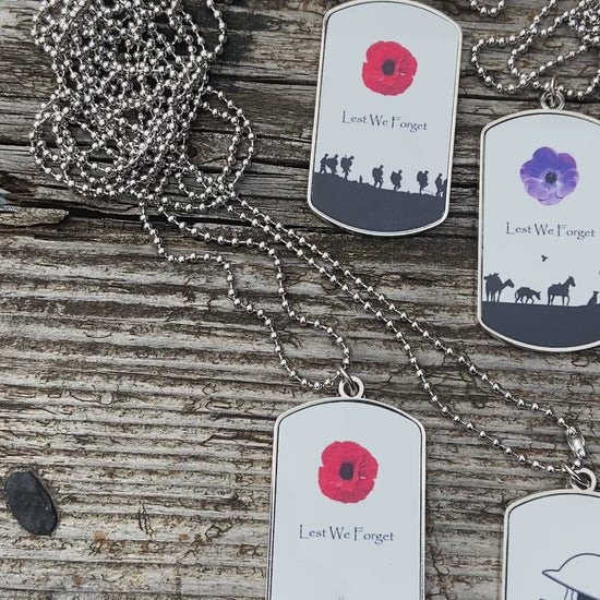 Our Premium Dog Tag Necklaces with Remembrance Military Poppy designs make fantastic gifts for him, for her, and for family and friends. Made from stainless steel and printed onto 0.2cm aluminium metal tags. They are stylish and modern with a wide range to choose from.