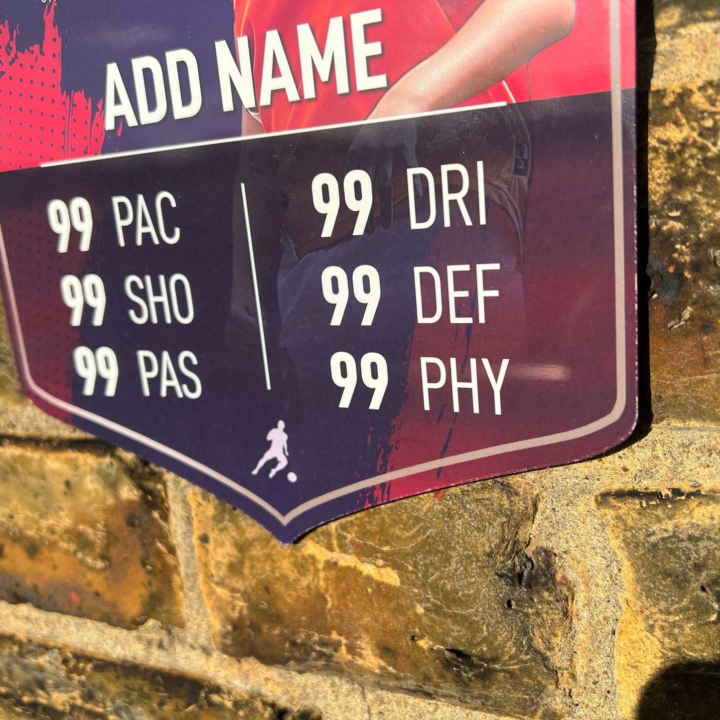 Personalised Football Player Stats Card A5 / A4 / A3 metal sign plaque wall art.