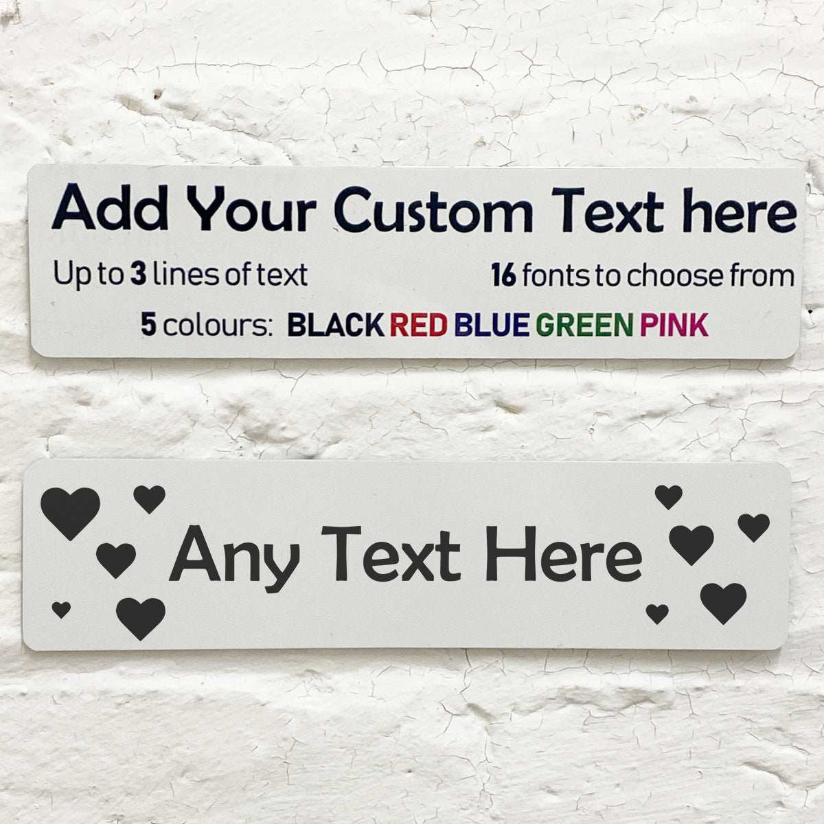 Personalised Metal Door Plaque 20x5 cm metal sign plaque wall art. Made of 0.5mm aluminium metal plaque. 7.8 x 2 inches, they would look great in any bedroom, bar, or office. These high-quality printed metal plaques come in a 20x5 cm size with sticky pads so you can fix them on the wall or door.
