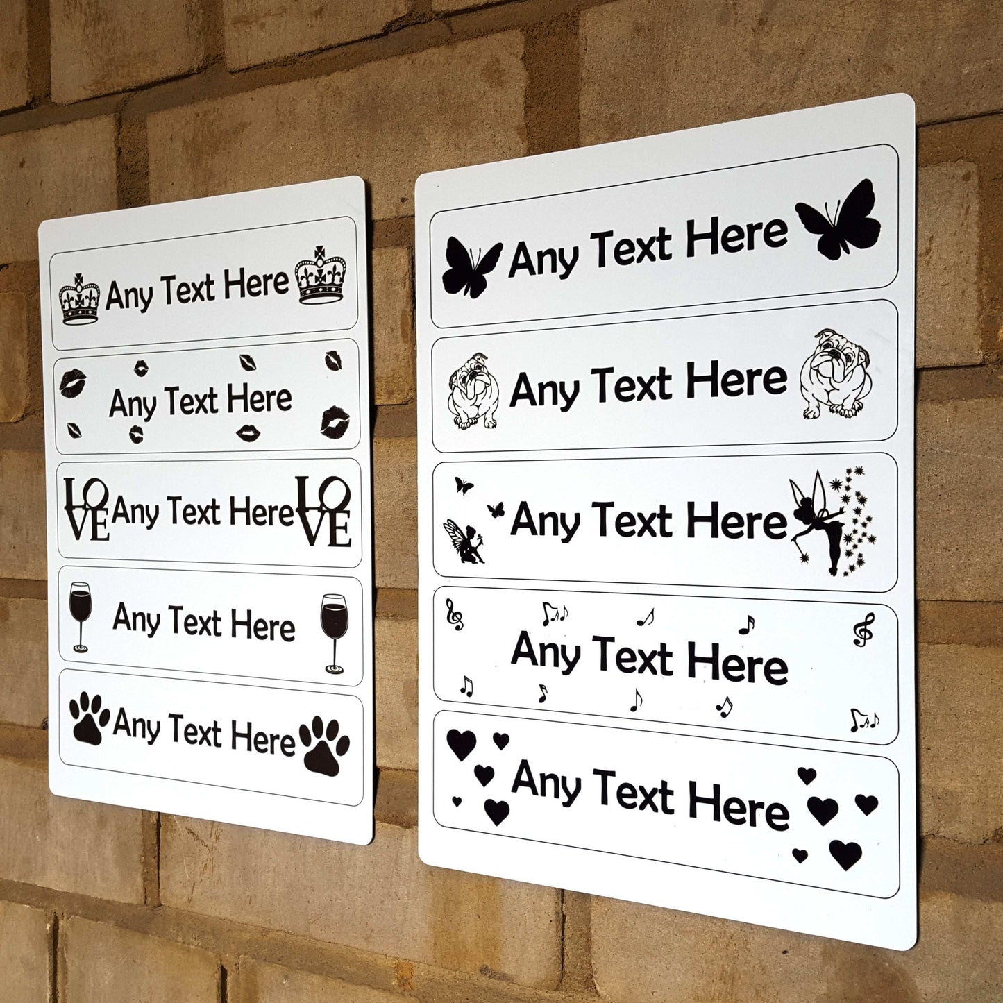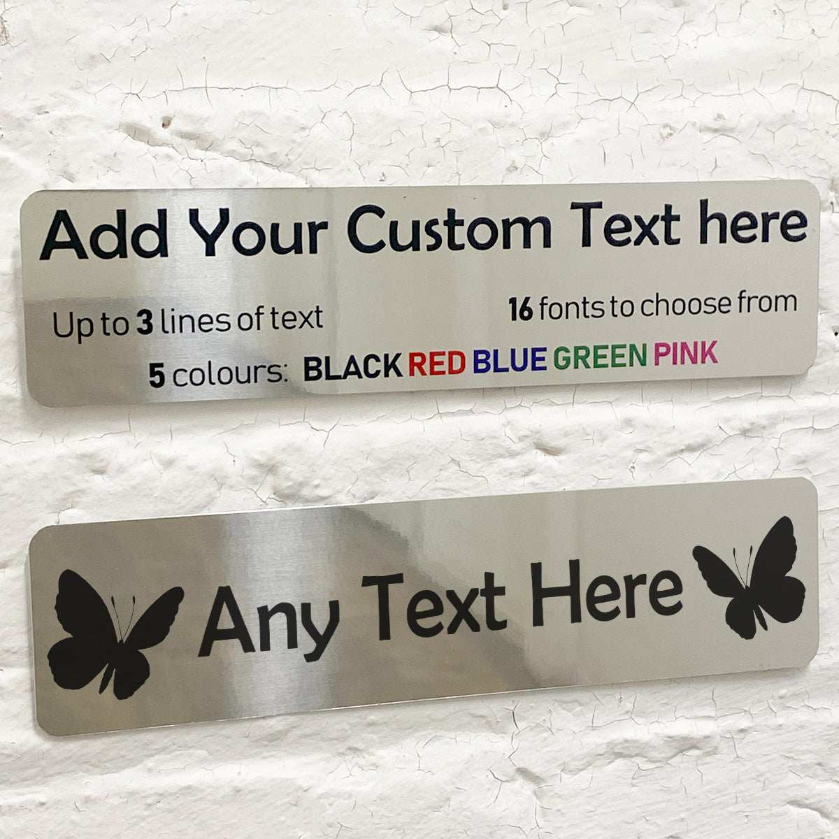 Personalised Metal Door Plaque 20x5 cm metal sign plaque wall art. Made of 0.5mm mirror aluminium metal plaque. 7.8 x 2 inches, they would look great in any bedroom, bar, or office. These high-quality printed metal plaques come in a 20x5 cm size with sticky pads so you can fix them on the wall or door.