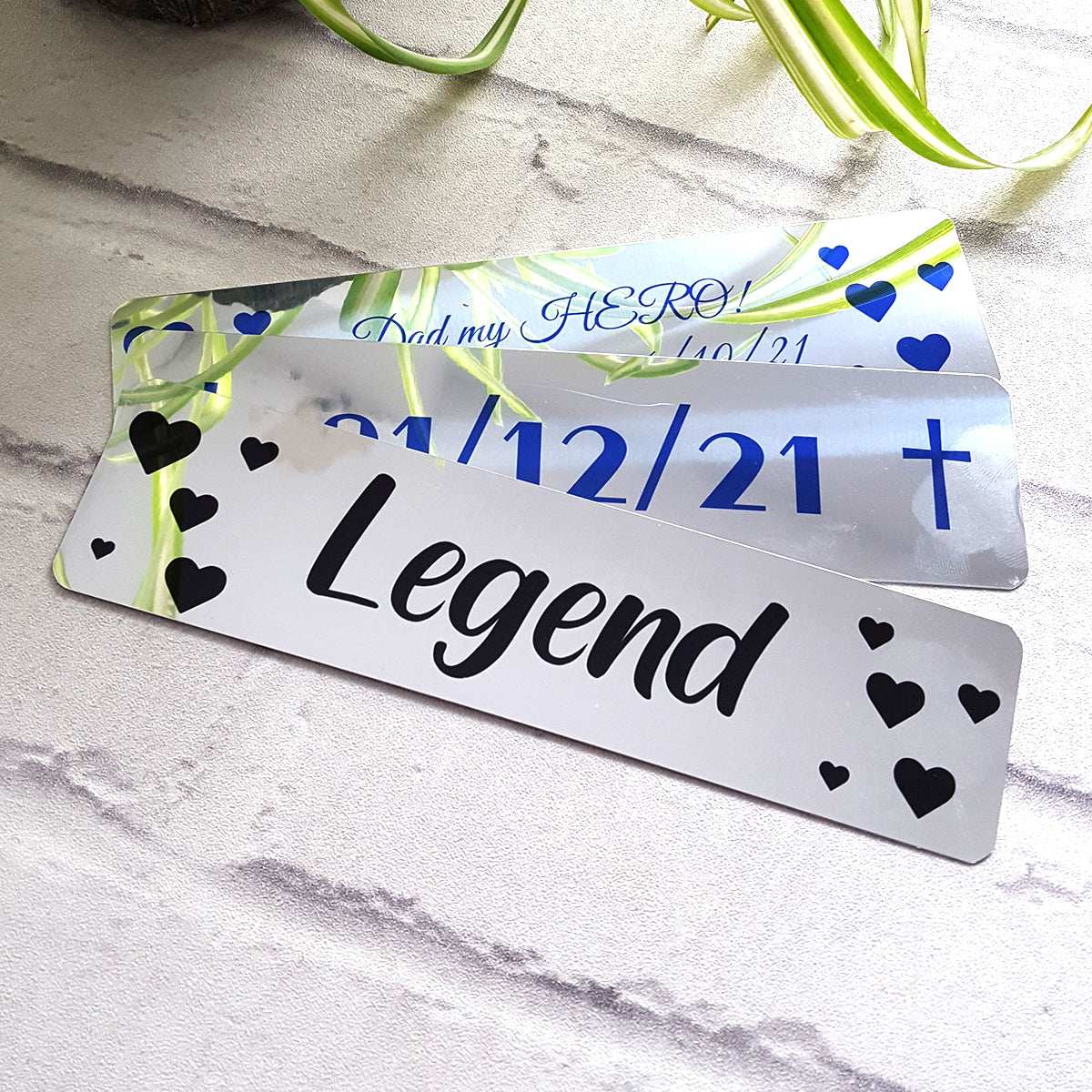Personalised - Mirror Metal plaque for Room / Shed / Office sign with custom text and clip arts