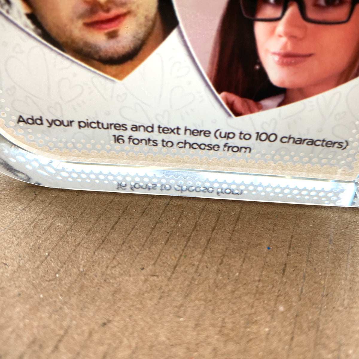When customising you will not see the artwork due to the limited features of the customise button. However please be assured we will put your picture and / or text in the best possible fit so your personalised custom made crystal block looks amazing.