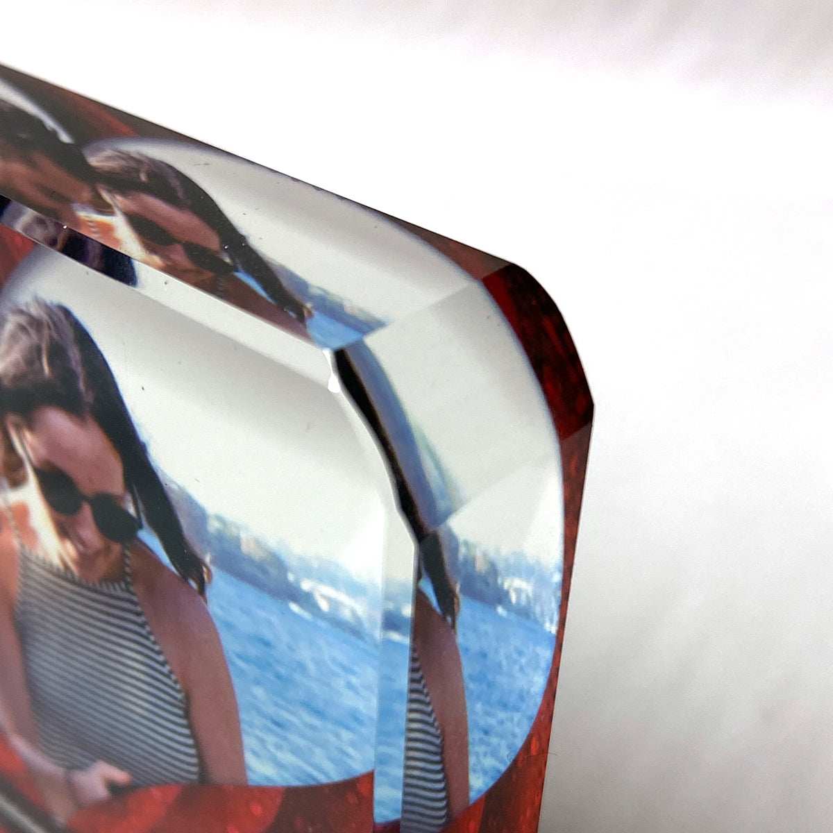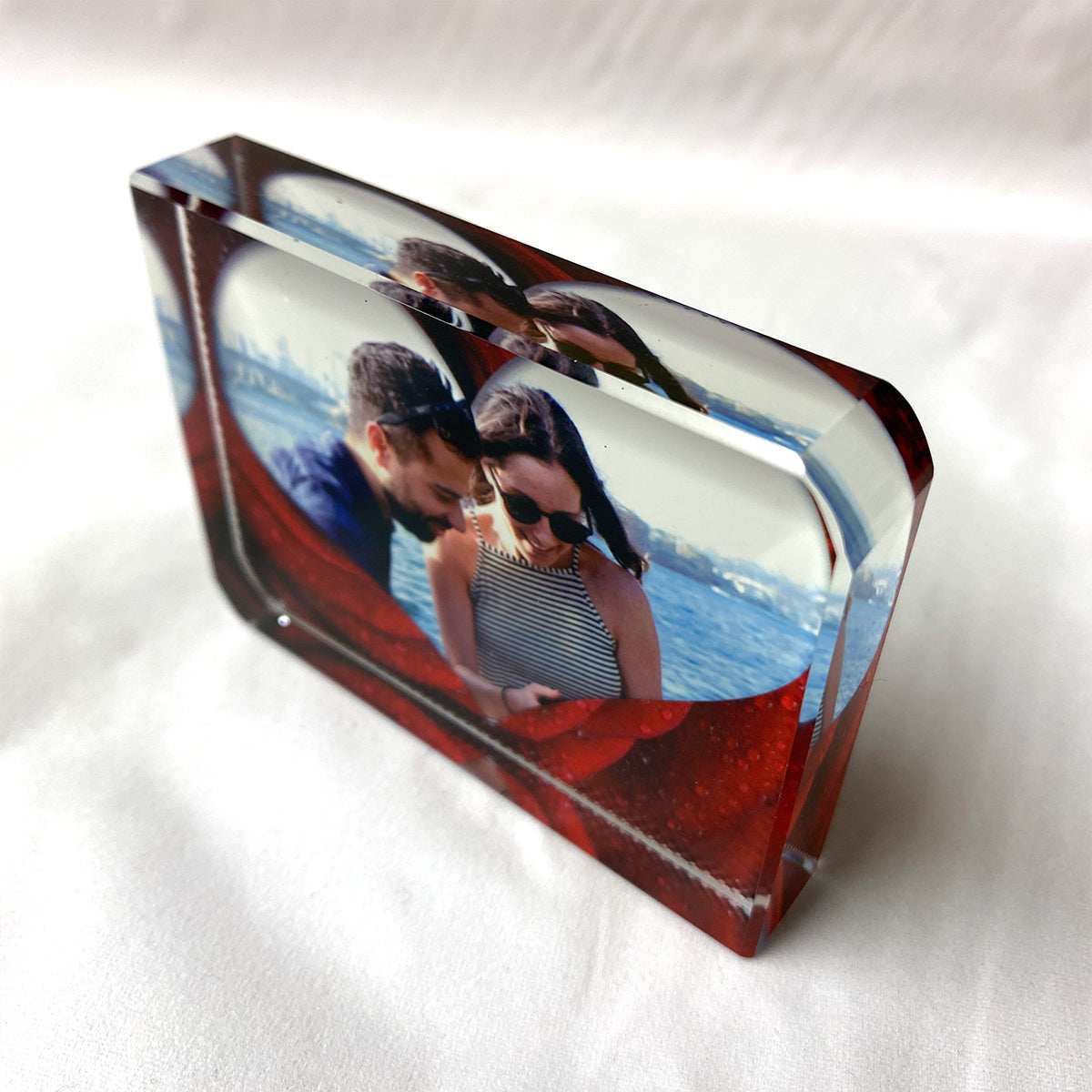 Red Rose Heart Border Crystal Block