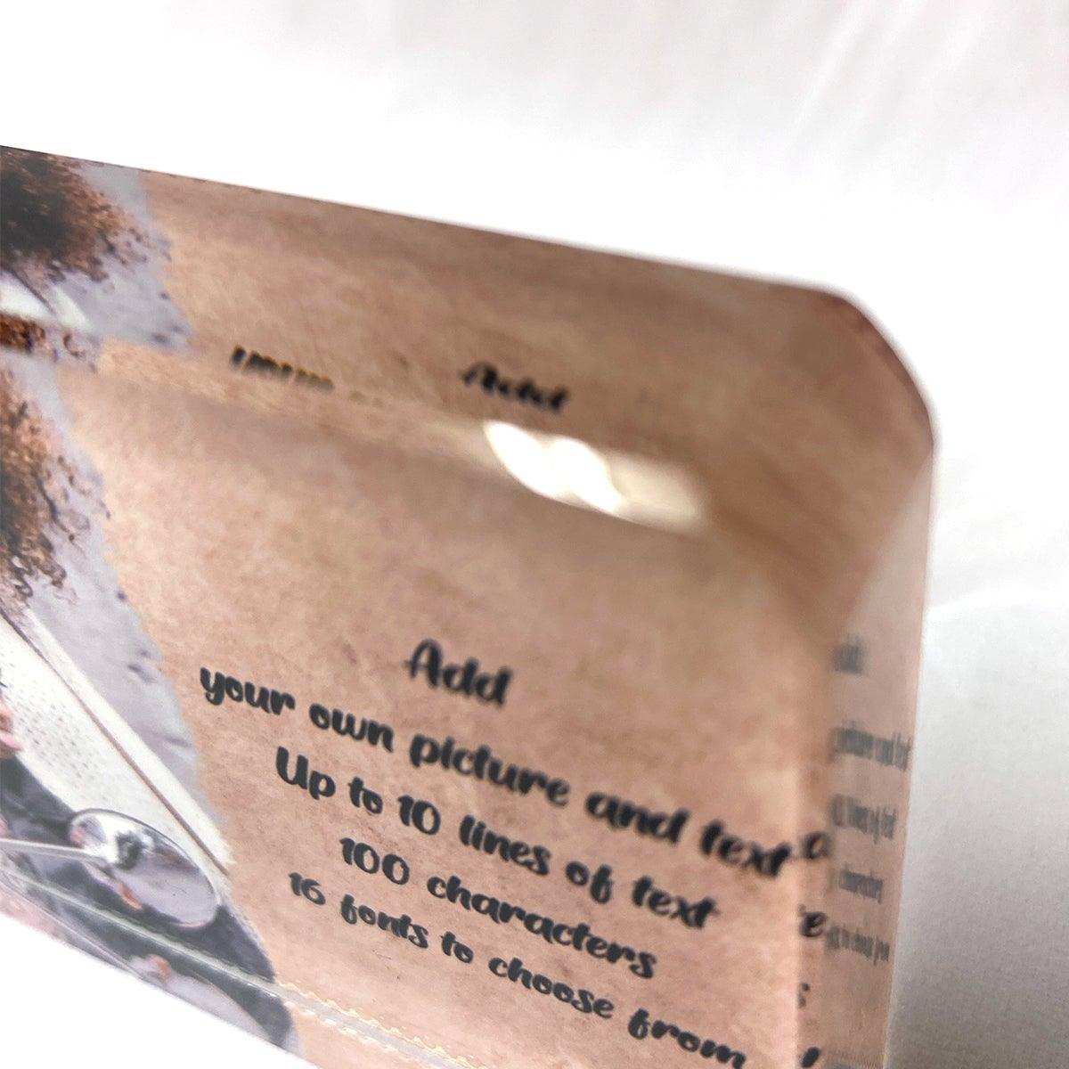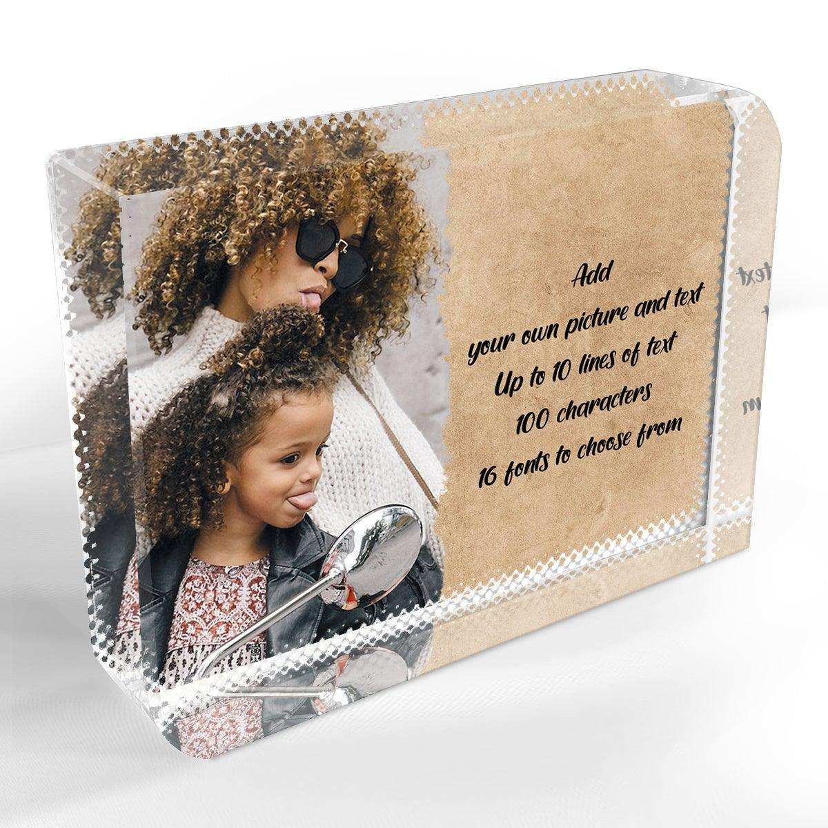 When customising you will not see the artwork due to the limited features of the customise button. However please be assured we will put your picture and/or text in the best possible fit so your personalised custom-made crystal block looks amazing.