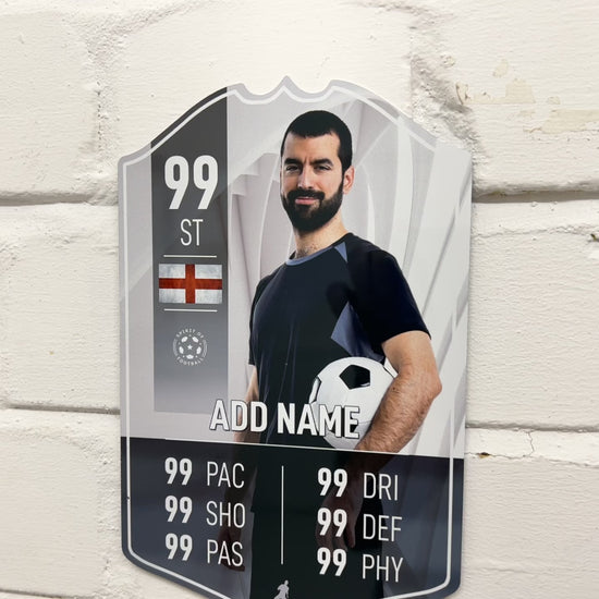 FULLY CUSTOMISABLE: with your Own Photo Player Name, Team & Nation, Position & Overall rating, Stats (Pace, Shooting, Passing, Dribbling, Defending, Physical).